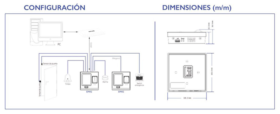 El control de presencia y acceso EM42, es un terminal de biometría, que opera de modo independiente, se puede conectar con el software de IglobalControl, para control de acceso y gestión de tiempo y asistencia.